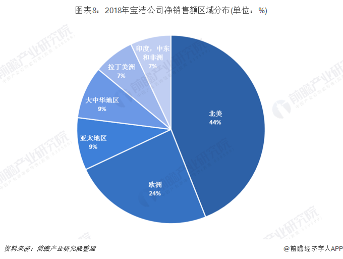 2018年,宝洁公司在全球销售量最大的区域为北美地区,占比为44%;其次为欧洲地区,占比为24%;亚洲所占份额为9%。2018年,联合利华在全球销量同宝洁相同,也主要集中在欧洲和美洲地区,美洲地区销售额占比31%,欧洲地区销售占比24%。