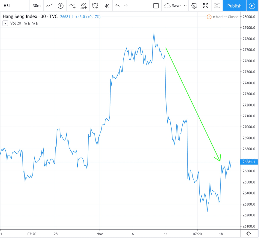 受此利好消息影响,今日香港股指强势反弹。恒指涨1.35%,国企指数涨1.26%。但这样的好局势似乎不会持续太久。