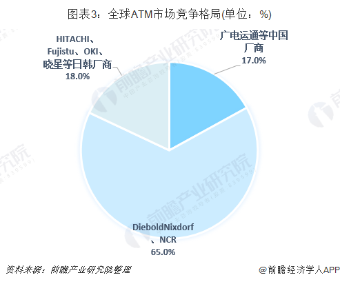 因ATM行业是技术密集型、知识密集型和资本密集型相结合的产业,行业进入壁垒很高,因此行业的集中度较高。长期以来,NCR、Diebold、WincorNixdorf三家公司占据了全球ATM大部分市场份额,NCR在全球ATM领域市场份额更是连续多年占据首位。自2015年底Diebold与WincorNixdorf达成收购协议,合并成立新公司DieboldNixdorf,新公司取代NCR成为全球最大的ATM制造商。