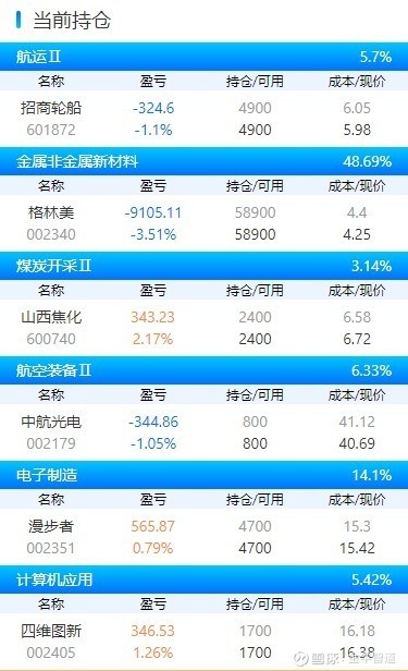 我今天的持仓有招商轮胎、中航光电、四维图新、格林美、山西焦化、漫步者。