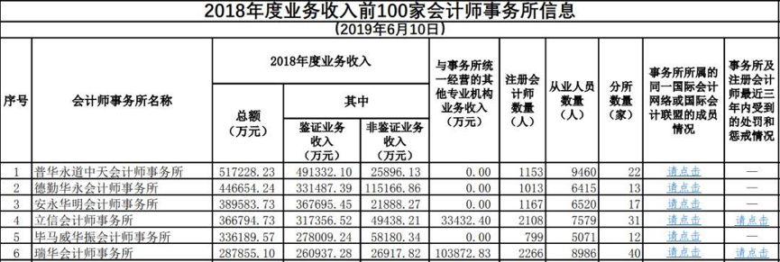 而以收入计算,瑞华会计师事务所在全国会计师事务所中排名第6 位。排在它前面的除了著名的国际四大会计事务所(普华永道、德勤、安永、毕马威),只有立信会计师事务所。