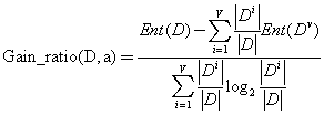 其中分母可以看作为属性自身的熵。取值可能性越多,属性的熵越大。