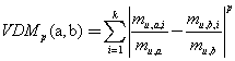 聚类算法中的距离度量一般用闽科夫斯基距离,在p取不同的值下对应不同的距离,例如p=1的时候对应曼哈顿距离,p=2的情况下对应欧式距离,p=inf的情况下变为切比雪夫距离,还有jaccard距离,幂距离(闽科夫斯基的更一般形式),余弦相似度,加权的距离,马氏距离(类似加权)作为距离度量需要满足非负性,同一性,对称性和直递性,闽科夫斯基在p>=1的时候满足读来那个性质,对于一些离散属性例如{飞机,火车,轮船}则不能直接在属性值上计算距离,这些称为无序属性,可以用VDM(Value Diffrence Metrix),属性u上两个离散值a,b之间的VDM距离定义为