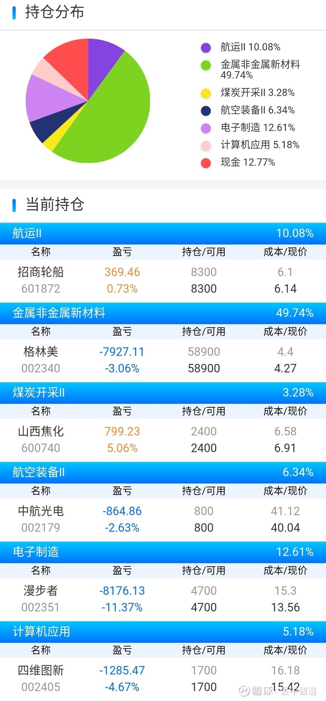 我今天的持仓有招商轮船,格林美,山西焦化,中航光电,漫步者,四维图新。