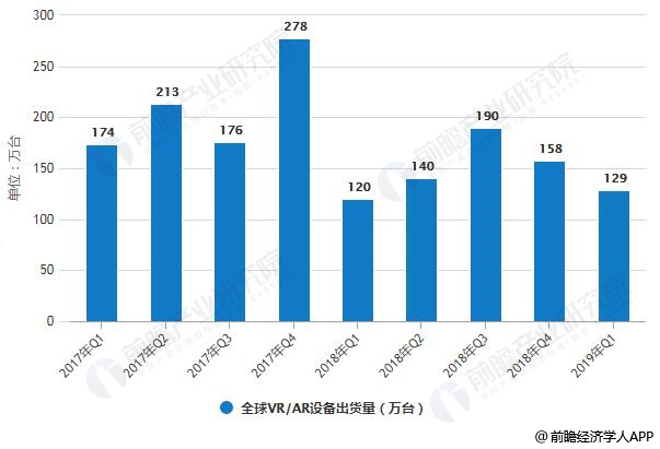 2017-2019年全球VR/AR设备季度出货量统计情况