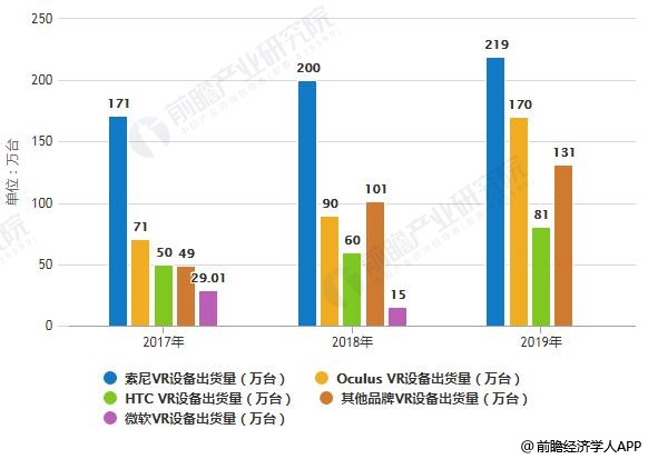 2017-2019年全球主要品牌VR设备出货量统计情况及预测