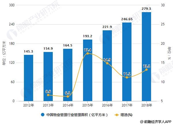 2012-2018年中国物业管理行业管理面积统计及增长情况