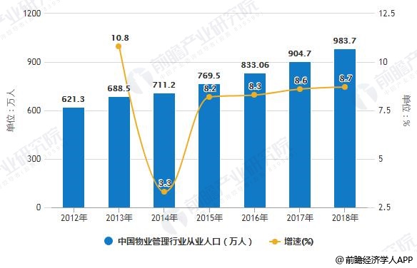 2012-2018年中国物业管理行业从业人口统计及增长情况