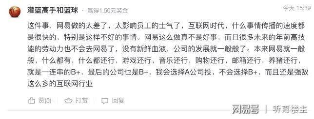 网易这么做真不是好事,而且很多未来很多年,一些高技能的劳动力也不会去网易了,没有新鲜血液,公司的发展就一般般了。本来网易就一般般,什么都有,什么都还行,游戏还行,音乐还行,购物还行,邮箱还行,养猪还行,就是一连串的B+,最后的公司也是B+,我会选择A公司投,不会选择B+,而且还是强敌这么多的互联网行业。