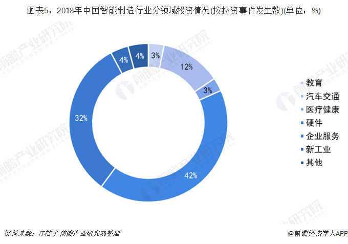 从投资领域来看,据IT桔子统计数据显示,2018年,我国硬件领域投资事件占比超40%,企业服务投资事件占比约为32%。