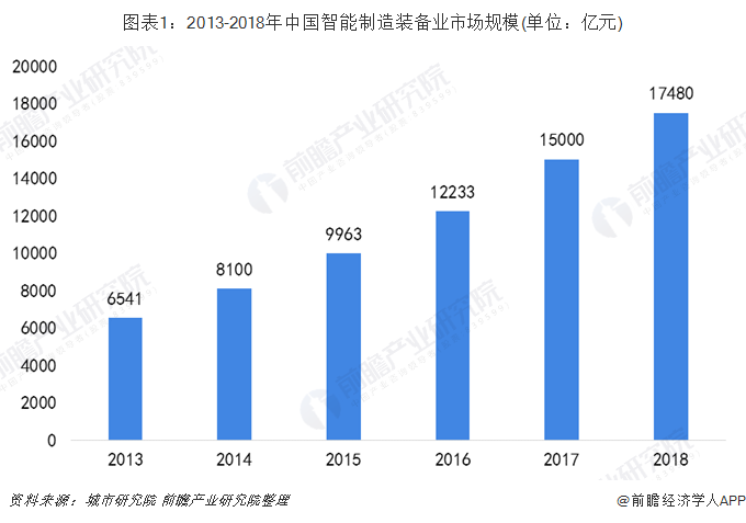 近年来,我国出台了一系列旨在促进高端装备、智能制造发展的政策,为智能制造行业创造了良好的政策环境,推动行业高质量发展。据城市研究院统计数据显示,2018年,我国智能制造装备也市场规模超17000亿元。