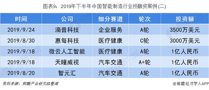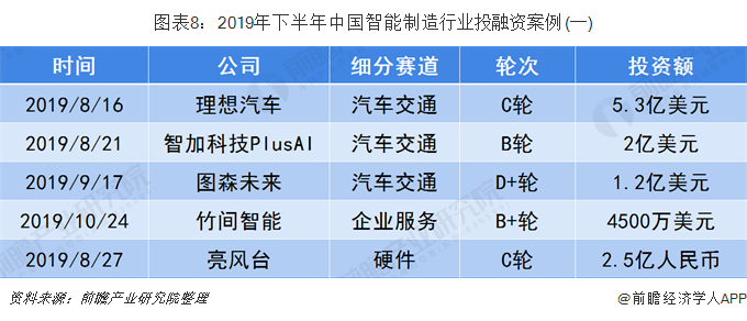 2019年下半年,我国智能制造行业投资额超1亿元的事件共发生15起。