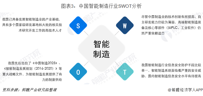 目前,我国已具备了发展智能制造业的产业基础,同时国家也出台了多部政策鼓励我国智能制造行业的发展,我国智能制造行业具备一定的发展优势,存在着发展的机遇。但同时,我国智能制造行业也同样面临着挑战,我国智能制造行业自主研发能力仍有提升空间,在信息安全防护方面的手段也相对单一。