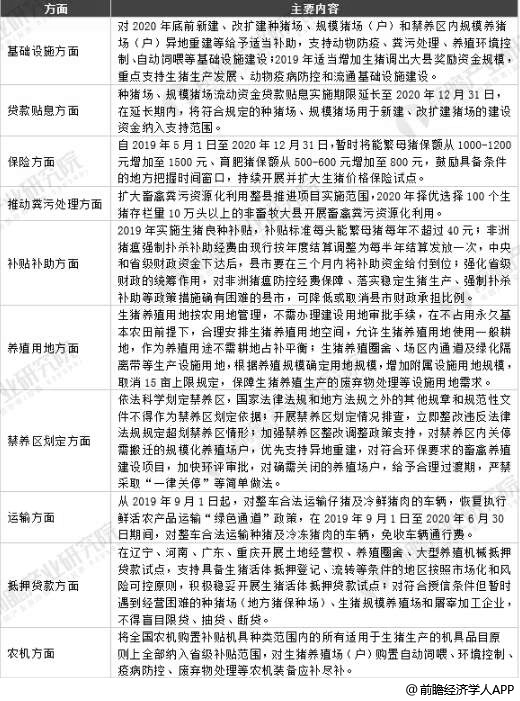2019年中国生猪养殖政策集中方面分布情况