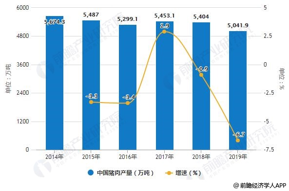 2014-2019年中国猪肉产量统计及增长情况预测