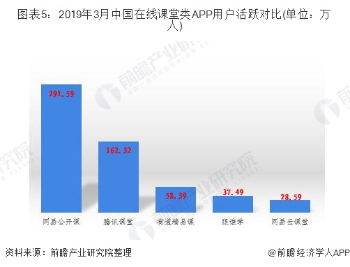 数据显示,在线教育在线课堂类APP中,网易公开课的活跃用户人数接近300万,排行第一。在线教育课堂类APP活跃用户排行前五中,有三款APP出自网易。前瞻产业研究院认为,网易的在线课堂类APP活跃用户人数排行靠前,但目前三款应用的业务存在部分重叠,通过业务调整和协调可以更好地发挥网易在在线课堂类APP的优势。