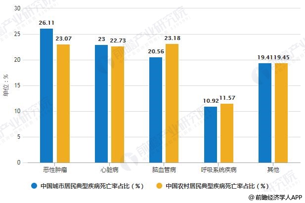 2017年中国城乡居民典型疾病死亡率占比统计情况