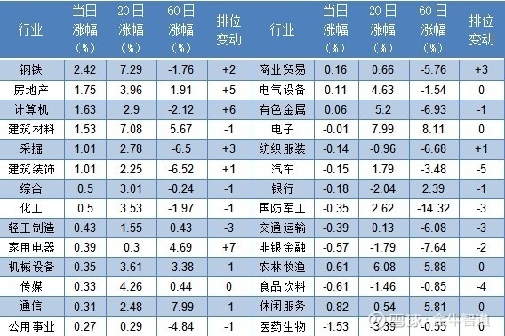 今日较强:钢铁、房地产、计算机