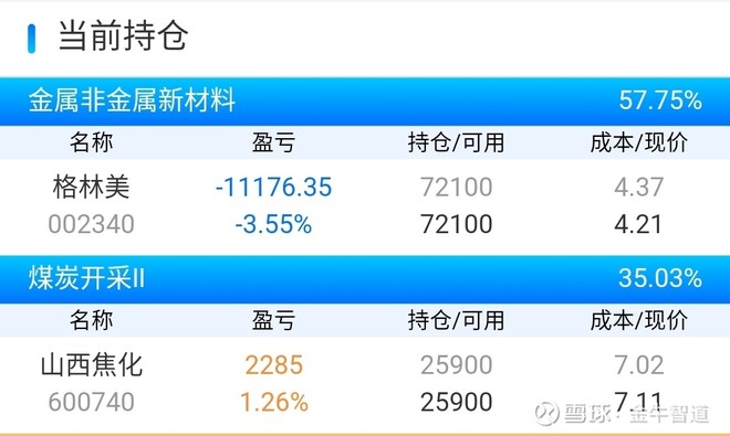我今天的持仓有山西焦化,格林美。