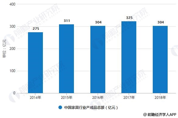 2014-2018年,我国家具制造行业产成品总额波动变化,2018年,受中美贸易战、经济下行压力增加等因素的影响,我国家具行业产成品总额有所减少,为304亿元。