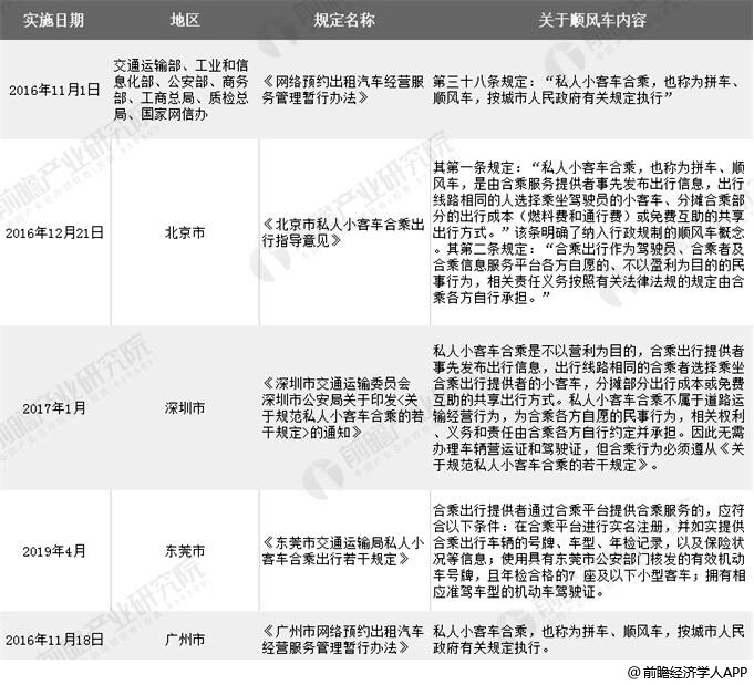 2016-2019年国家及部分地区关于顺风车规定分析情况