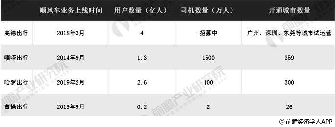 在滴滴下线的一年多时间里,嘀嗒、哈罗和高德纷纷开通顺风车业务。2018年12月,哈罗出行开始招募顺风车司机,并在2019年2月正式上线顺风车业务;和滴滴在同一时间下线顺风车业务的高德,在2019年6月时重启顺风车主招募工作;滴答出行,在滴滴下线顺风车业务期间,快速发展,赢得了大量车主和乘客的转移;曹操出行也在今年9月份开始试运营顺风车,已经覆盖包括北京、上海、广州、深圳等在内的20个城市。