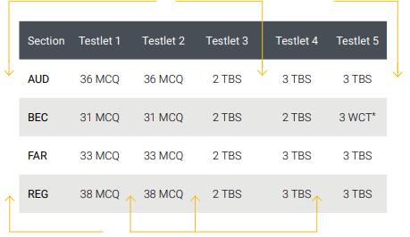 AUD、FAR、REG科目的1,2部分是选择题,3,4,5是案例分析,BEC科目1,2部分是选择题,3,4部分是案例分析,5部分是写作。