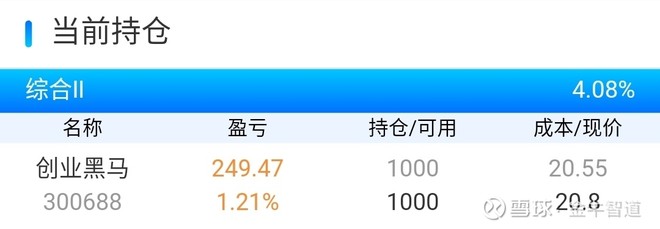 我今天的持仓有创业黑马。