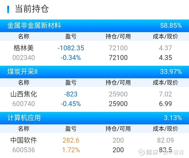 我今天的持仓有山西焦化,格林美,中国软件。