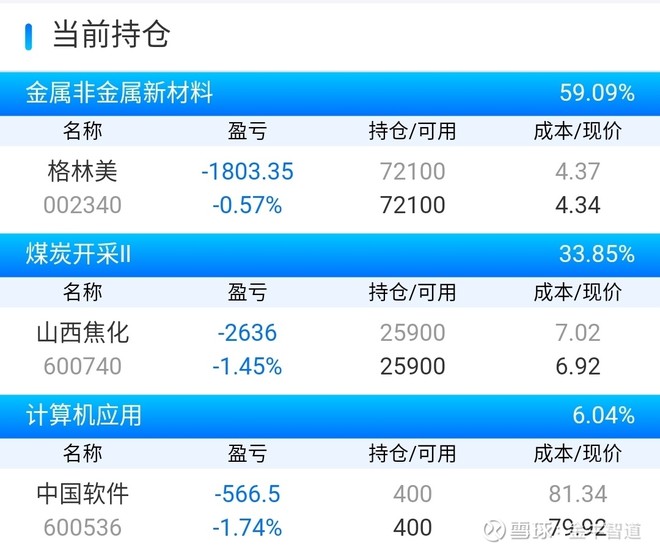 我今天的持仓有山西焦化,格林美,中国软件。