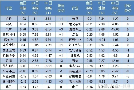 今日较强:银行、钢铁、汽车