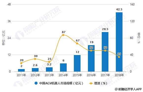 2011-2018年中国AGV机器人市场规模统计及增长情况