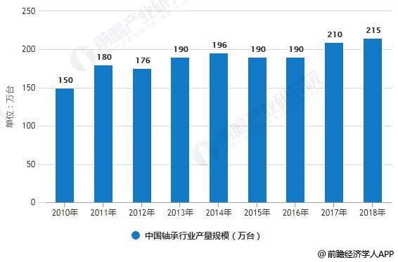 2010-2018年中国轴承行业产量规模统计情况