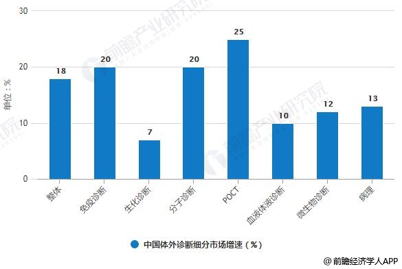 2018年中国体外诊断细分市场增速统计情况