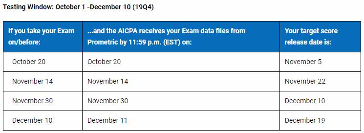 2019年AICPA考试Q4季度考试成绩什么时候公布?