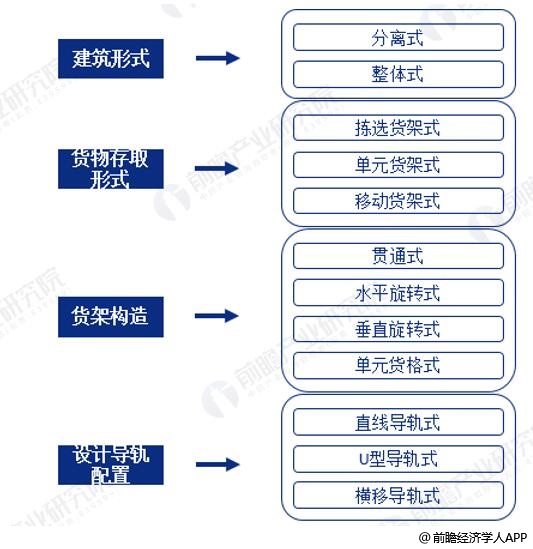 自动化立体仓库是一个复杂的综合自动化系统,作为一种特定的仓库形式,主要有四种方式:按建筑形式、按货物存取形式、按货架的构造和按设计导轨配置。