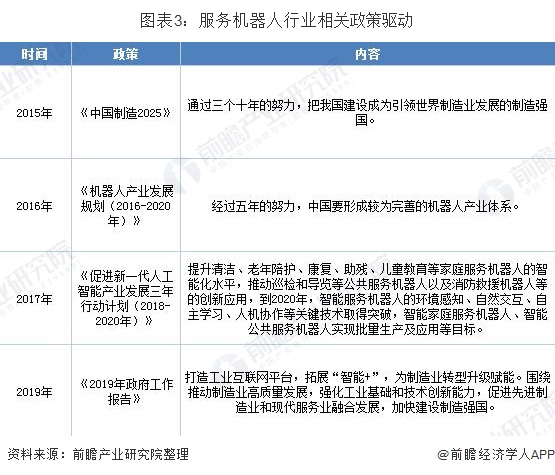 自2015年,《中国制造2025》以来,对于机器人制造产业以及相关智能产业,我国都推出了大量扶持政策,在核心的规划中也常有涉及,2019年,政府报告中首次出现“智能+”,并提出要利用“智能+”促进先进制造业和现代服务业融合发展,服务机器人行业前景一片大好。