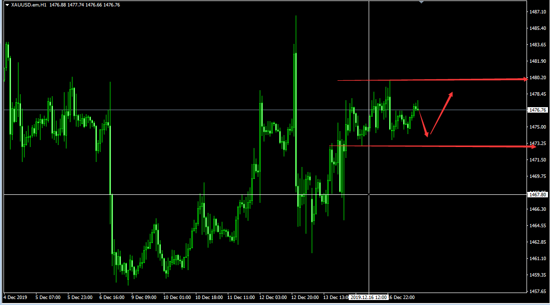 短线做单的话重点关注下方1468-1470阻力位,走势一旦到1473-1474附近的支撑区间,毫不犹豫做多单目标看向1480,防守做最为保险的1468.