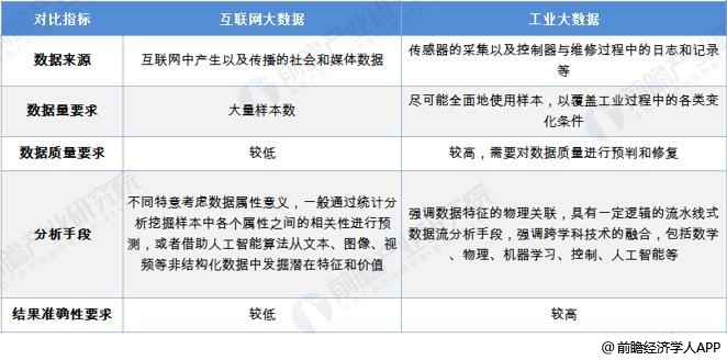工业数据具备更强的专业性及关联性,价值实现要求与难度均高于互联网大数据。工业大数据与互联网大数据之间存在明显区别。互联网大数据主要来自互联网中产生及传播的社会媒体数据,相对分散,且来自不同媒体与设备,而工业大数据来自不同环节不同设备的不同阶段,专业性及关联性都比较强。