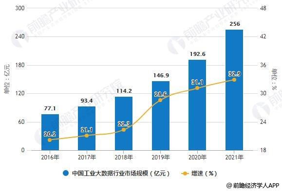 2016-2021年中国工业大数据行业市场规模统计及增长情况预测