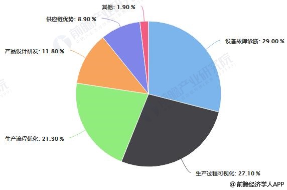 设备故障诊断和生产过程可视化产品具有一定的通用性,在一定程度上可实现标准化。生产流程优化和产品设计研发同样占据主要地位,市场份额提升较快。
