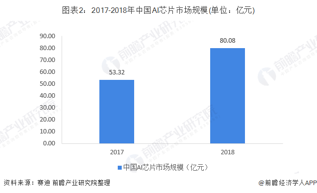 根据调研数据机构赛迪顾问在2019世界人工智能大会上发布的《中国人工智能芯片产业发展白皮书》的数据显示,2018年中国AI芯片市场继续保持高速增长,整体市场规模达到80.08亿元,同比增长50.2%。