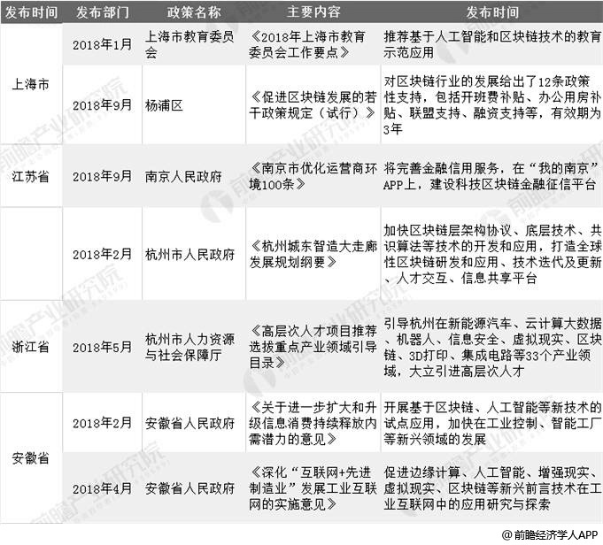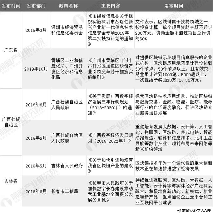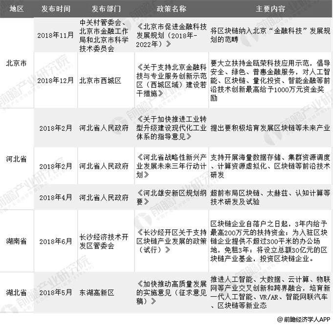 2018-2019年地方层面区块链相关政策汇总情况