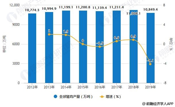 2012-2019年全球猪肉产量统计及增长情况预测