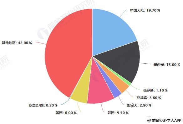 2018年全球猪肉进口量区域分布情况