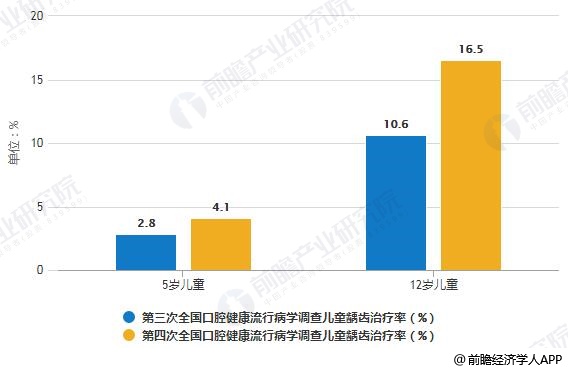 近年来,随着生活水平提高,国人对口腔健康也投入了更多的关注。对比第三、四次全国口腔健康流行病学调查报告,儿童龋齿治疗率十年时间上升了近50%。2017年,5岁儿童龋齿中经过充填治疗的比例为4.1%,12岁为16.5%。