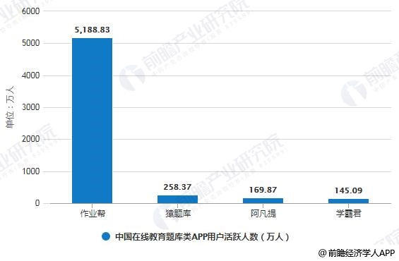 数据显示,在线教育题库类APP中,作业帮的活跃用户最多,接近5000万人,远超过其他同类在线教育题库的活跃用户。艾媒咨询分析师认为,作业帮将搜题工具、题库和在线辅导整合于一体,满足初高中学生全方位的学习需求,有着更强的用户粘性。