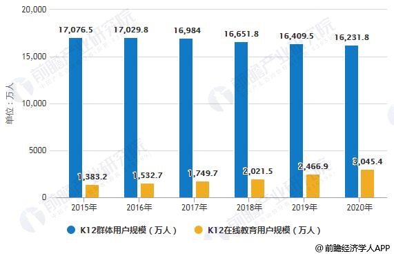 2015-2020年中国K12在线教育用户规模统计情况及预测