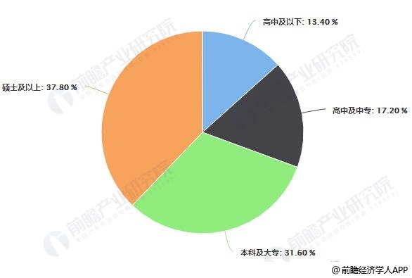 从绩效优秀的保险从业人员学历程度来看,目前收入高的保险从业人员数量中,本科及以上的学历人数占比超六成。具体来看,目前,高中学历的行业从业人员数量占比为13.4%;高中及中专学历的行业从业人员数量占比为17.2%;本科及大专学历的行业从业人员数量占比为31.6%;硕士及以上的行业从业人员数量占比为37.8%