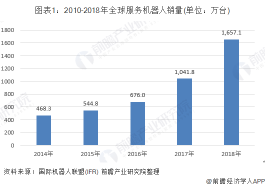 2014-2018年,全球服务机器人销量逐年增长,2018年为1657.1万台,同比增长61.29%,增长迅速。聊天机器人作为服务机器人的重要产品,能够应用各种领域。其市场规模也逐步扩大。